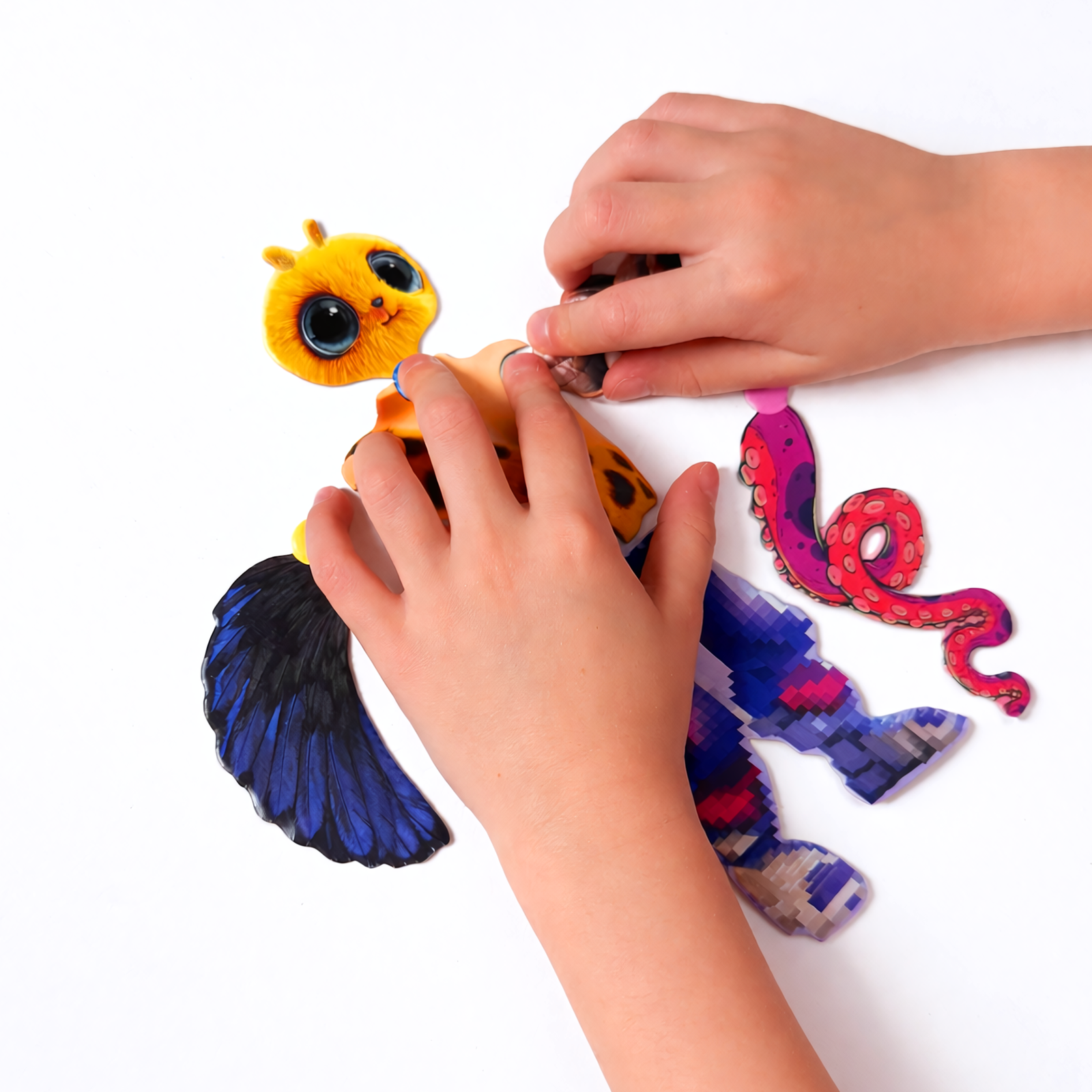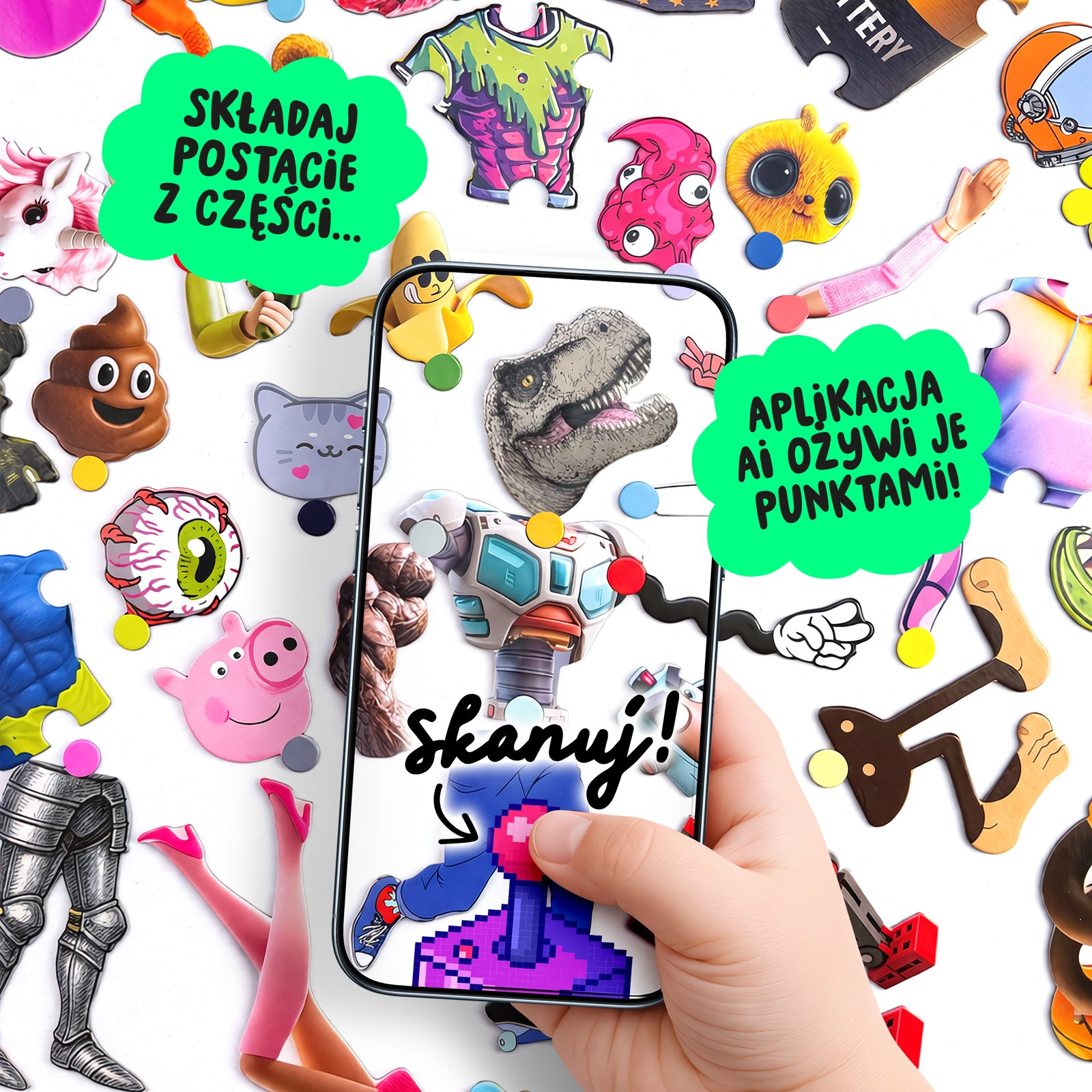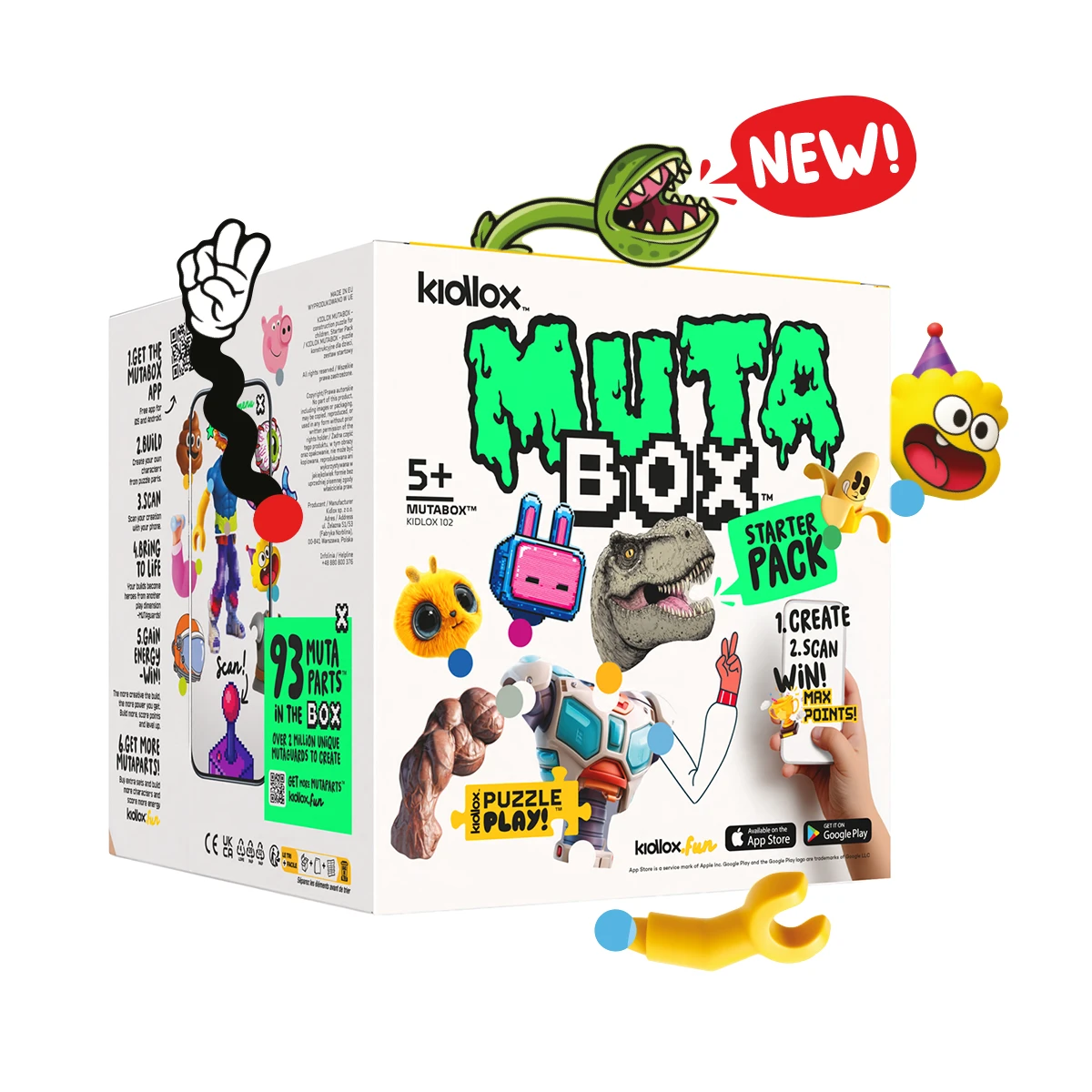 MUTABOX™ to kreatywna zabawka dla dzieci 5+, która pozwala budować własne postacie z 93 elementów. Każda kombinacja to nowy bohater – łącznie ponad 2 miliony możliwości. Zabawka działa w pełni offline, a opcjonalna aplikacja dodaje dodatkową warstwę zabawy i punktów. Bez plastiku, z naciskiem na wyobraźnię.